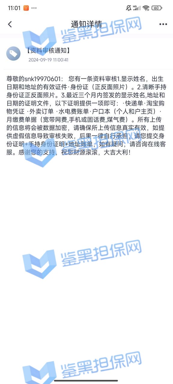 3.用户提交维权申请后资料不齐全,需在一周内补齐鉴黑担保网客服要求的资料,若超过一周时间没有完善维权信息,维权将因资料不全拒绝受理;