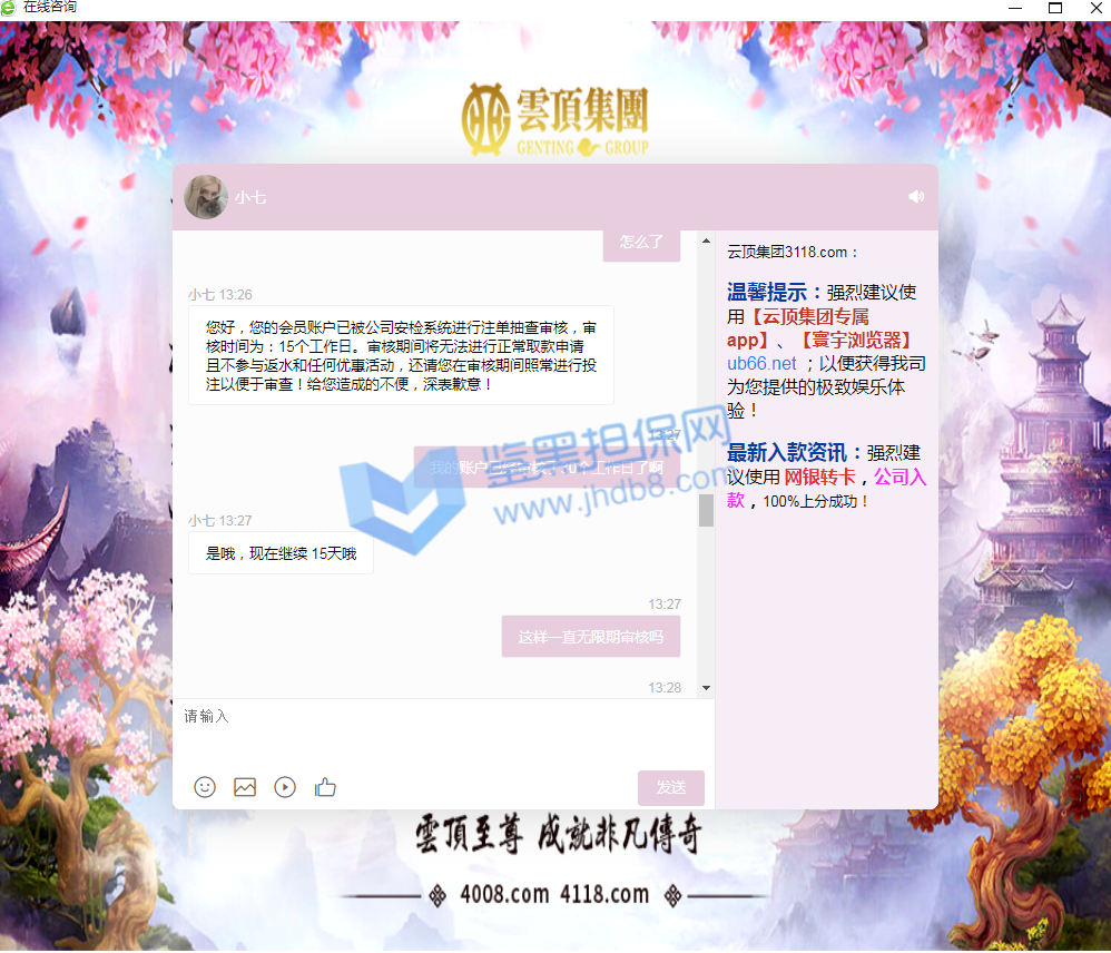 4.用户提交维权需为本人提交,若代替让人发布维权鉴黑担保网将拒绝受理;