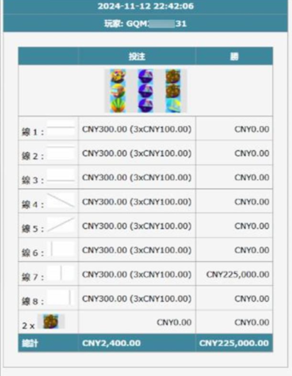 双11当日佬哥本厚心雄,下注自是不含糊,抱定一款游戏就是一顿集火输出,可以看见300/注平拉,