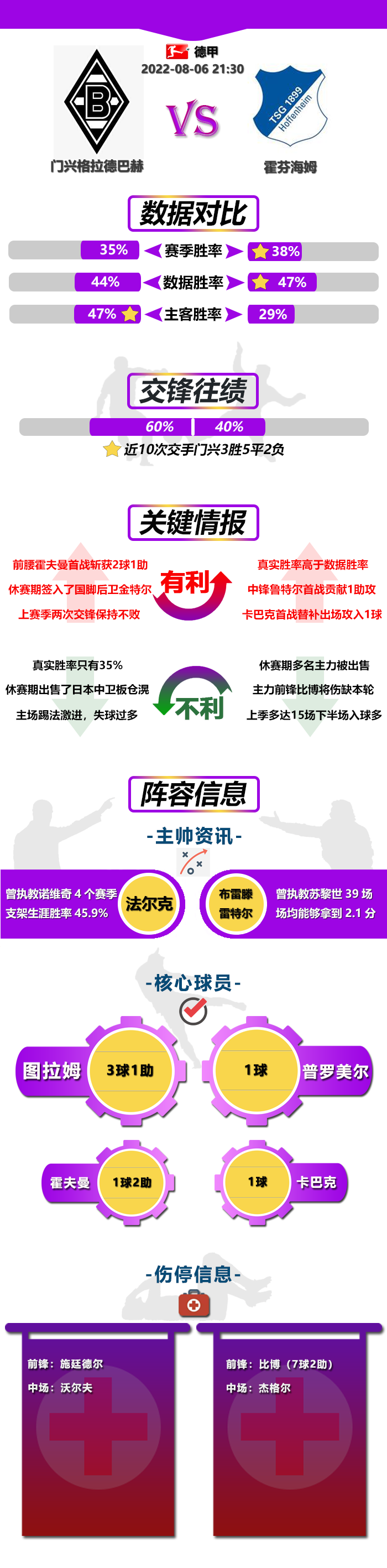 总的来说吧,双方在新赛季开局的表现都十分出色,不过相比较之下,还是布伦特福德稍胜一筹,毕竟他们在实力方面和进攻强度方面都要胜过富勒姆,而且历史交锋方面也是占据优势——过去10次与富勒姆交手只输过1次,期间保持5成胜率,差距还是有的,更何况目前数据方面对于富勒姆给予的支持力也较弱,数据走势有示好客队之意,综合多方面的数据情况,这场比赛布伦特福德继续抢分的机会很大。