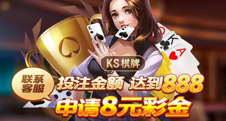 首次转入ks棋牌游戏截止首次转出,投注额达到888元,可联系客服申请8元彩金。