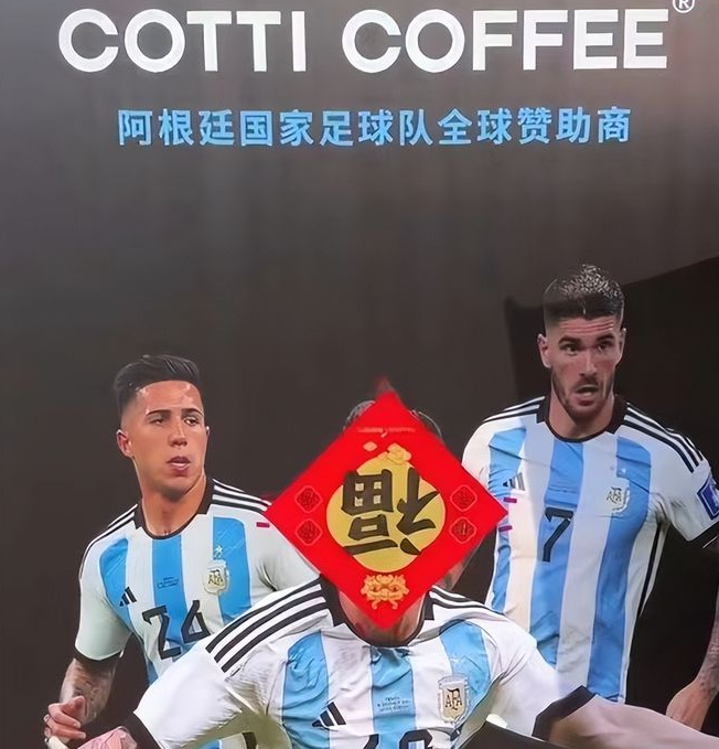作为阿根廷国家队的全球赞助商库迪咖啡也是紧跟时事,紧急避险。在梅西未出场事件出来之后,库迪咖啡的店内海报将梅西的脸部用一张大大的福字挡住,恩佐和德保罗则幸免于难。库迪咖啡主动与梅西划清界限,生怕梅西带来的负面影响会波及到他们。