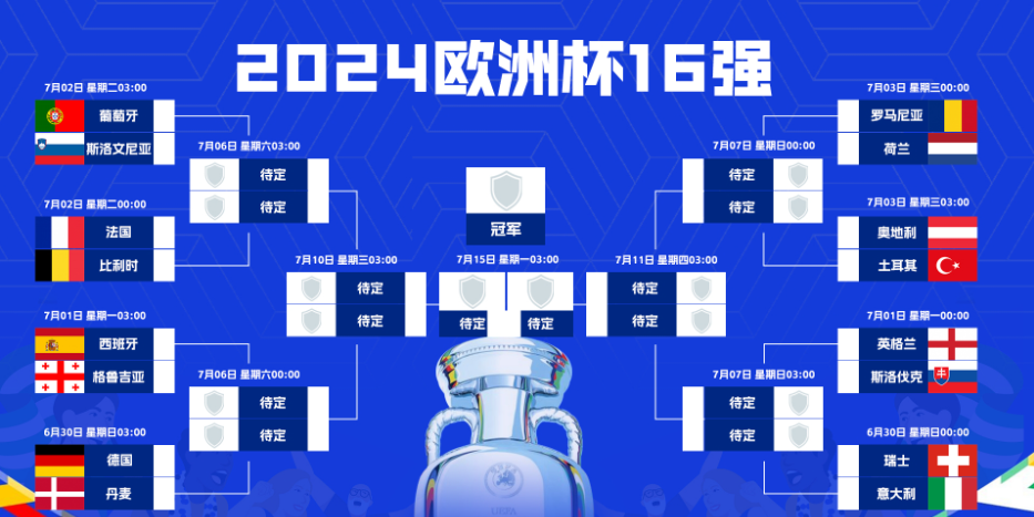 欧洲杯16强对阵: